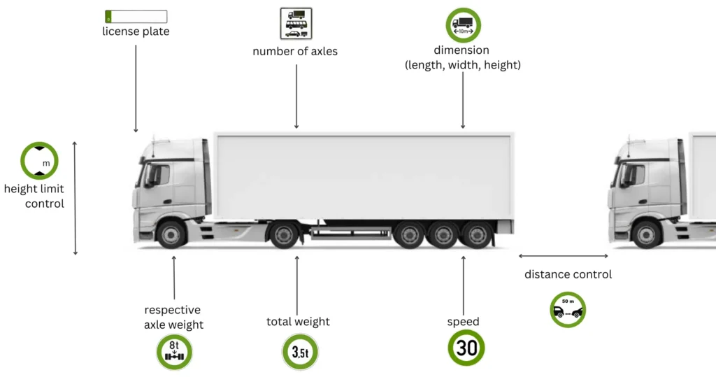 In addition, height control and distance control systems can be integrated. This allows vehicles with excessive superstructures to be reliably detected and sorted out before low structures such as tunnels or bridges. Distance control also analyzes driving behavior, enabling safety-critical situations caused by insufficient vehicle distance to be detected and documented at an early stage.